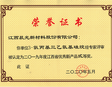 3-aminopropyl triethoxysilane products were awarded the "Second Prize of New Products in 2019 in Jiangxi Province" by Jiangxi Provincial Department of Industrial Information Technology.