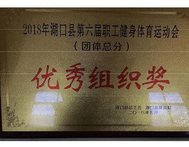 Hukou County Federation of Trade Unions and Hukou County Sports Bureau jointly awarded the honor of "Excellent Organization Award of the 6th Hukou County Employee Fitness Sports Games in 2018".