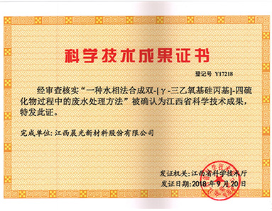 "A wastewater treatment method for the synthesis of bis -[γ-triethoxy-silicopropyl] -tetrasulfide by aqueous phase method" was awarded the honor of "Scientific and Technological Achievements of Jiangxi Province" by the Science and Technology Department of Jiangxi Province.
