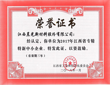 Jiangxi Provincial Industry and Information Technology Commission awarded the honor of "2017 Jiangxi Province Specialized and special new Small and medium-sized Enterprises".