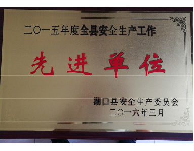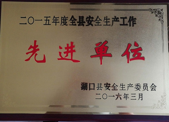 Hukou County Safety production Committee awarded the honor of "2015 County Advanced unit of safety production work".