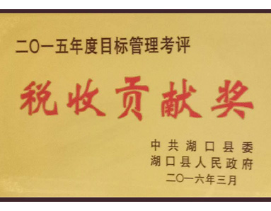 Hukou County Party Committee and Hukou County People's Government jointly awarded the honor of "2015 Annual Target Management Evaluation Tax Contribution Award".