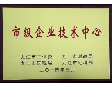 Jiujiang Industry and Information Technology Commission, Jiujiang Finance Bureau, Jiujiang National Tax Bureau, Jiujiang Local Taxation Bureau jointly awarded the "Municipal Enterprise Technology Center" honor.